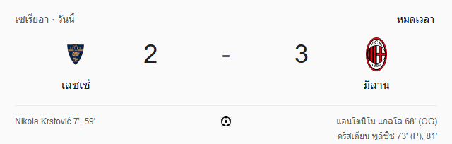 - นาทีที่ 95 กรรมการเป่าหมดเวลา เอซี มิลาน บุกชนะ เลชเช่ 3-2!