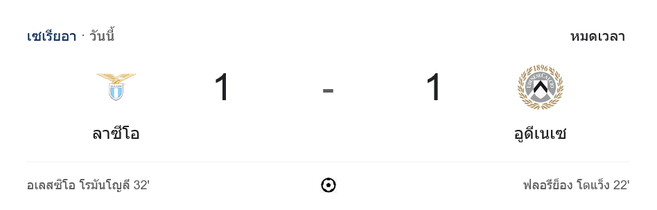 จาก : ผลบอลสด เซเรียอา 2024 ระหว่าง ลาซิโอ 1-1 อูดิเนเซ่ วันนี้ 11/3/68 – บ้านกีฬา