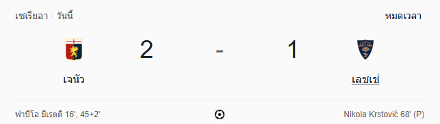 - นาทีที่ 48 กรรมการเป่าหมดครึ่งแรก เจนัว 2-0 เลชเช่