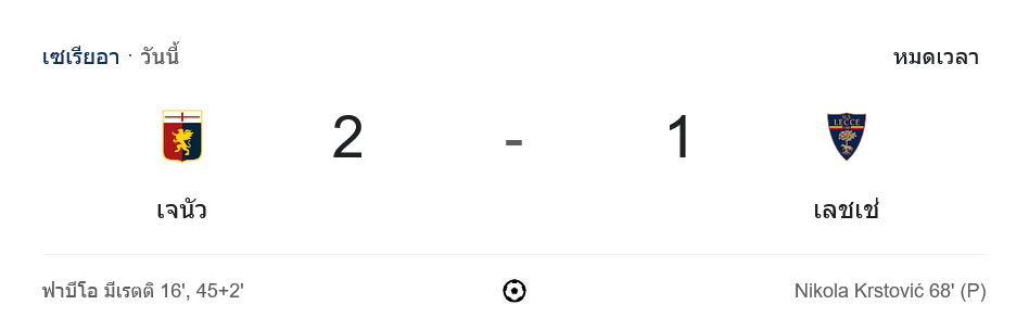 จาก : ผลบอลสด เซเรียอา 2024 ระหว่าง เจนัว 2-1 เลชเช่ วันนี้ 15/3/68 – บ้านกีฬา