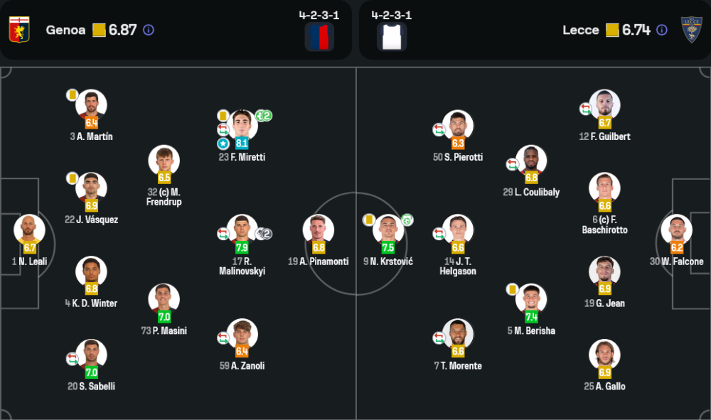 กลับมาครึ่งหลัง เลชเช่ พยายามเปิดเกมรุกเต็มที่เพื่อหวังเอาประตูคืน และพวกเขาก็มาได้จุดโทษในนาทีที่ 68 ซึ่ง นิโคลา คริสโตวิช รับหน้าที่สังหารเข้าไปไม่พลาด ไล่มาเป็น 2-1 แต่หลังจากนั้นแนวรับของ เจนัว ก็แข็งแกร่งพอจะปิดเกมเอาชนะไปได้