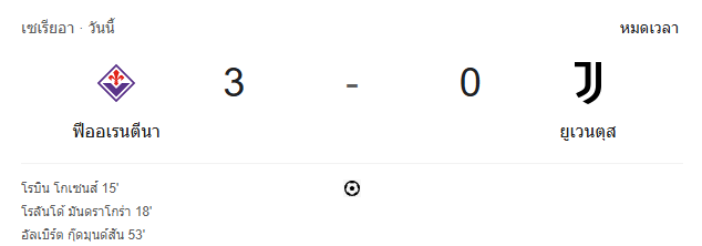 - นาทีที่ 92 กรรมการเป่าหมดเวลา ฟิออเรนติน่า เอาชนะ ยูเวนตุส 3-0!