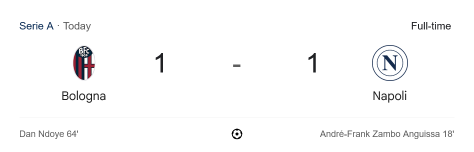 บ้านผลบอล สรุปหลังเกม เซเรียอา 2025 โบโลญญ่า 1-1 นาโปลี การต่อสู้ที่ดุดันและการแบ่งแต้มที่เร้าใจ