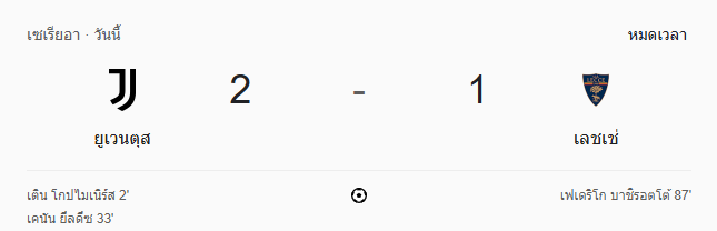 เกมนี้เป็นอีกหนึ่งตัวอย่างของคำว่า “ยิงนำไม่ใช่ปลอดภัย” เพราะแม้ ยูเวนตุส จะออกนำตั้งแต่ต้นเกมและดูควบคุมสถานการณ์ได้ แต่ เลชเช่ กลับไม่ยอมแพ้ไล่บี้ในช่วงท้ายจนเกือบแบ่งแต้มได้สำเร็จ / อย่างไรก็ตาม ผลบอลสด ยืนยันชัดเจนว่า 3 แต้มยังอยู่ในมือเจ้าถิ่น และฟอร์มของ ยิลดิซ ก็คู่ควรกับคำว่าผู้นำเกมรุกม้าลายคนใหม่