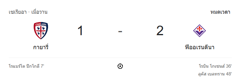 - นาทีที่ 99: จบเกม! ฟิออเรนติน่าบุกชนะกายารี่ 2-1 เก็บสามแต้มสุดสำคัญในเกมสุดเดือด