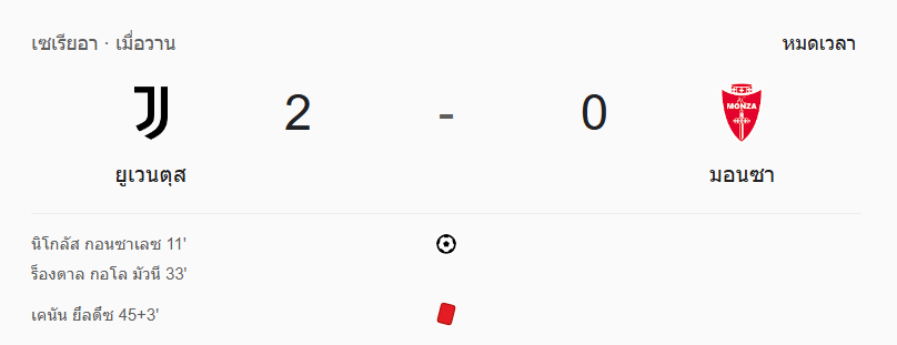 หมดครึ่งแรก: ยูเวนตุส 2-0 มอนซ่า