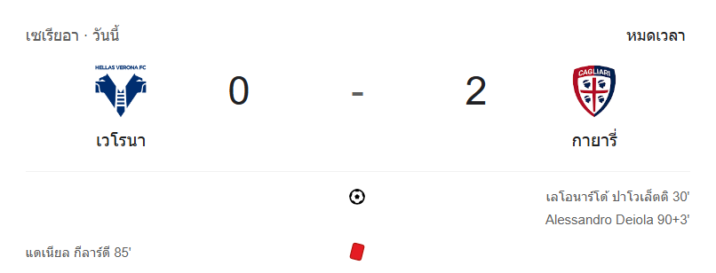 ผลบอลสด เซเรียอา 2025 ระหว่าง ทีมเวโรน่า vs กาญารี่ วันนี้ 29/4/68 ดูบอลย้อนหลัง คลิปไฮไลท์ ดูบอลเซเรียอา 2025