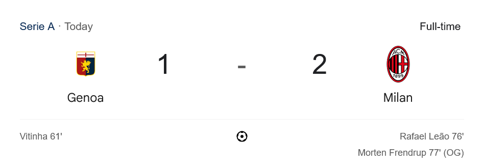 บ้านผลบอล สรุปหลังเกม เซเรียอา เอซี มิลาน แซงดับเจนัวคาบ้าน 2-1 ไล่จี้โซนยุโรป!