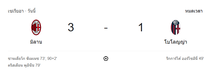 - จบเกม: เอซี มิลาน 3-1 โบโลญญ่า