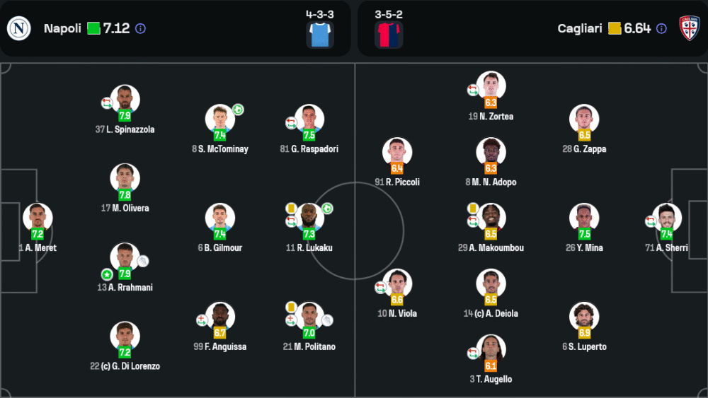 • กองกลาง: นิโคลัส วิโอล่า (6.6), อเลสซานโดร เดโอล่า (6.6), นาโดโป (6.3), อองเดรย์ มาคูมบู (6.5)