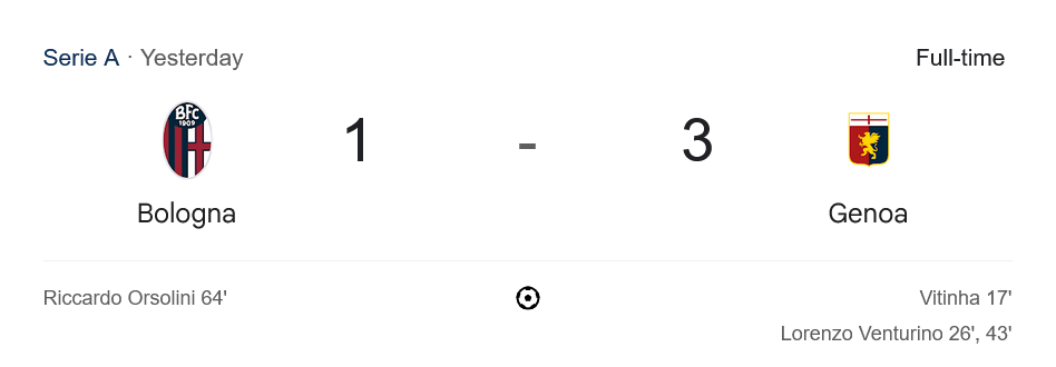 จาก : ผลบอลสด เซเรียอา 2025 ระหว่าง โบโลญญ่า 1-3 เจนัว วันนี้ 24/5/68 – บ้านกีฬา