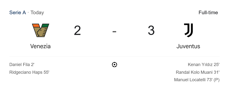 จาก : ผลบอลสด เซเรียอา 2025 ระหว่าง เอซี เวนิช 2-3 ยูเวนตุส วันนี้ 26/5/68 – บ้านกีฬา