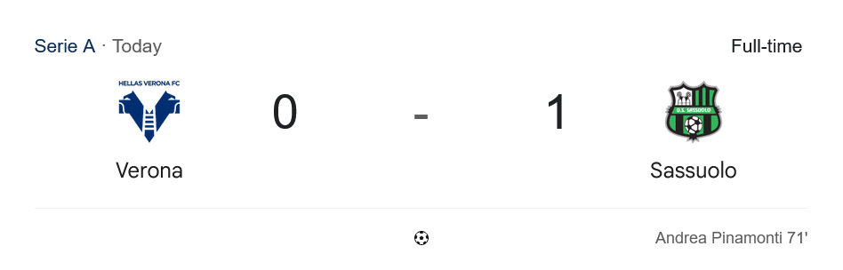 🏁 จบเกม เวโรน่า แพ้ ซัสเซาโล่ 0-1