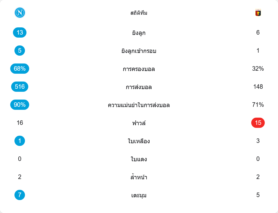 ในมุมมอง วิเคราะห์บอล นาโปลีแสดงให้เห็นถึงศักยภาพของทีมแชมป์เก่า ทั้งเกมรุกหลากหลายและจบสกอร์เฉียบขาด ส่วนเจนัวแม้พยายามเต็มที่แต่ความผิดพลาดเล็กน้อยในแนวรับคือจุดตัดสินเกม