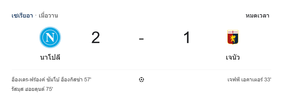 ⚽ ครึ่งแรก: เจนัวสวนทีเดียวเข้า นาโปลีเจอทีเด็ด