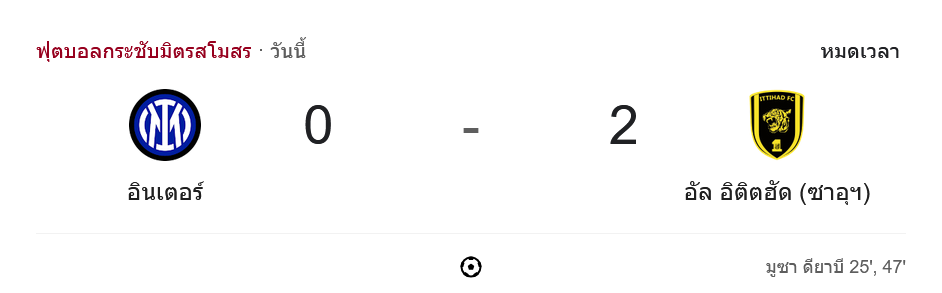 การแข่งขันฟุตบอล กระชับมิตรสโมสร 2024 ระหว่างทีม อินเตอร์ มิลาน กับ อัล อิติฮัด จบลงด้วยชัยชนะของทีม อัล อิติฮัด ด้วยสกอร์ 2-0 ในเกมที่เต็มไปด้วยความตื่นเต้นและการเล่นที่น่าประทับใจจากทั้งสองทีม