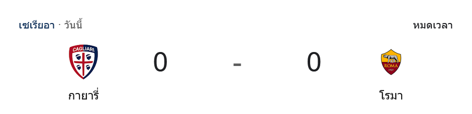 ผลบอลเซเรียอา 2024 ระหว่าง ทีมกาญารี่ vs ทีมเอเอส โรม่า วันนี้ 19/8/67 ดูบอลย้อนหลัง คลิปไฮไลท์ ดูบอลเซเรียอา 2024