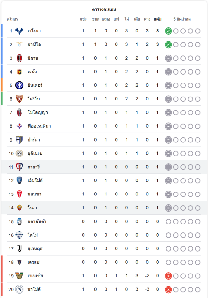 ผลบอลสด และ ผลบอลเซเรียอา เกมนี้ถือเป็นการเริ่มต้นที่ท้าทายและน่าติดตามของฤดูกาลใหม่ที่กำลังเข้มข้นขึ้นเรื่อยๆ อย่าพลาดที่จะติดตามทุกความเคลื่อนไหวในลีกนี้!