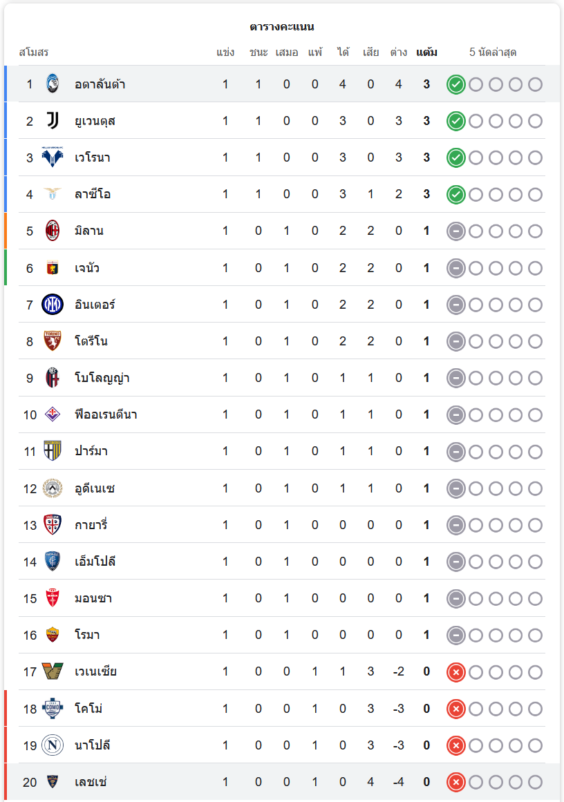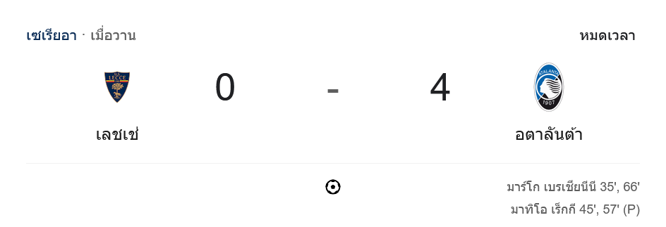 ตารางคะแนนเซเรียอาเลชเช่ 0-4 อตาลันต้า