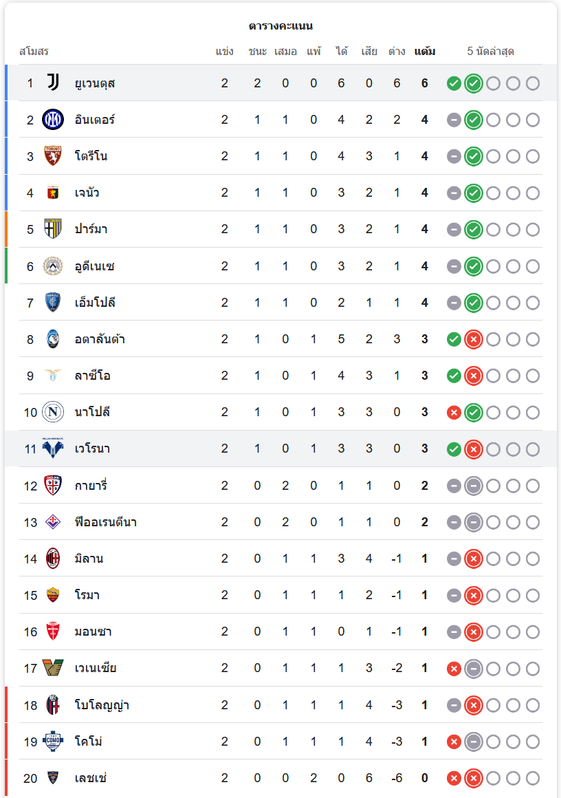 ตารางคะแนนเซเรียอาล่าสุด