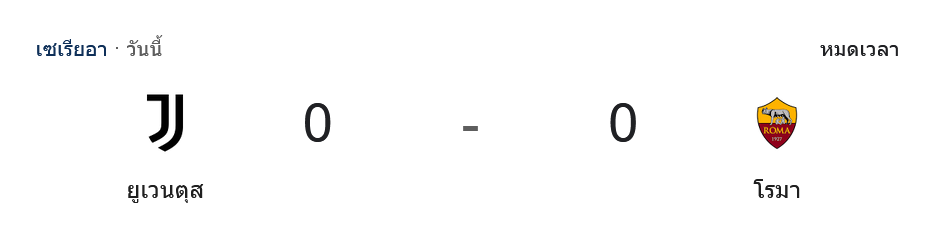 ตารางคะแนนบอลเซเรียอา 2024 ระหว่าง ยูเวนตุส 0-0 เอเอส โรม่า