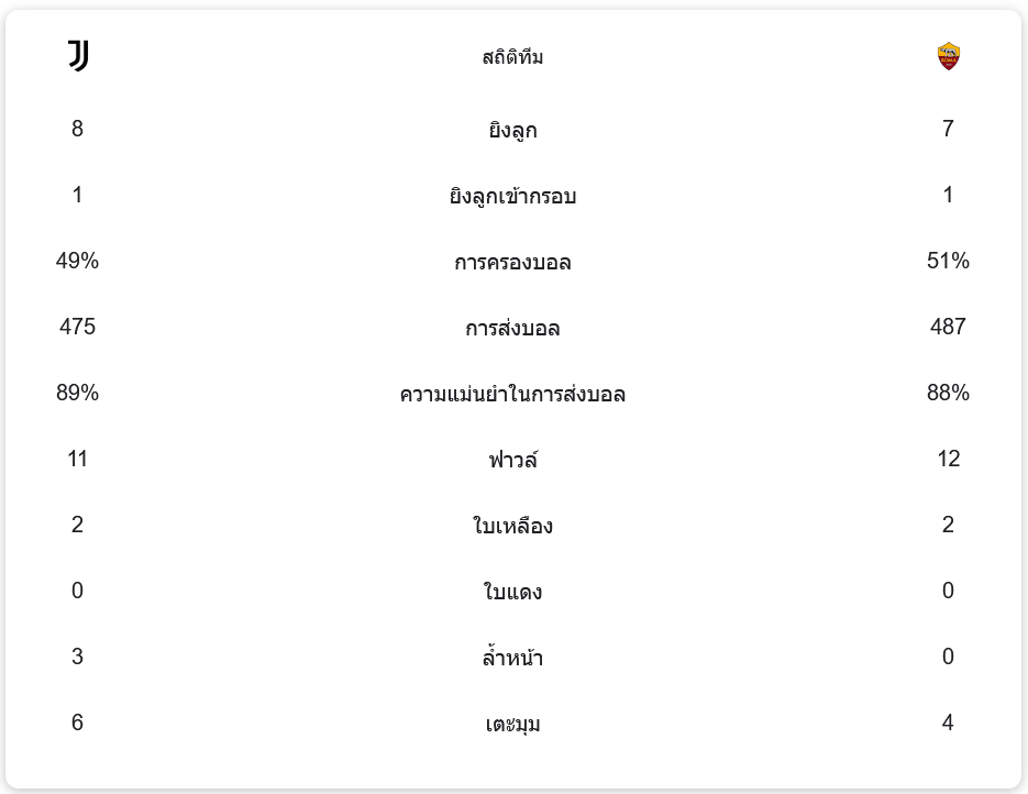 สถิติบอลเซเรียอา 2024 ระหว่าง ยูเวนตุส 0-0 เอเอส โรม่า