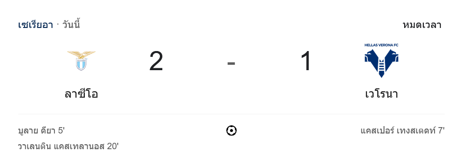 ตารางคะแนนเซเรียอา 2024 ระหว่าง ลาซิโอ 2-1 เวโรน่า