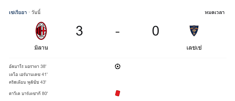 - นาทีที่ 43: คริสเตียน พูลิซิช ทำประตูปิดท้ายให้มิลานนำ 3-0