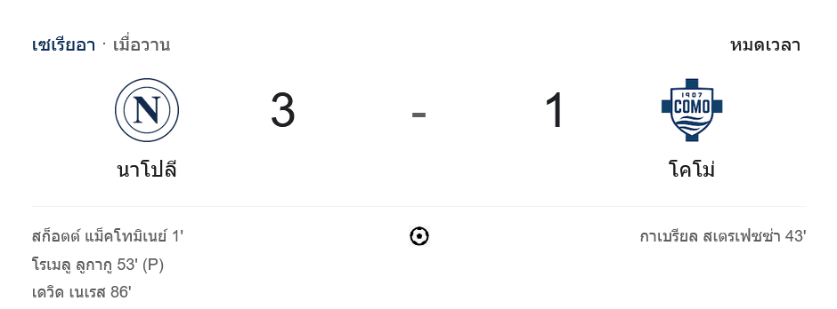 ไฮไลท์บอลเซเรียอา 2024 นาโปลี 3-1 โคโม วันนี้ 4/10/67 – บ้านกีฬา (bankeela1.com)