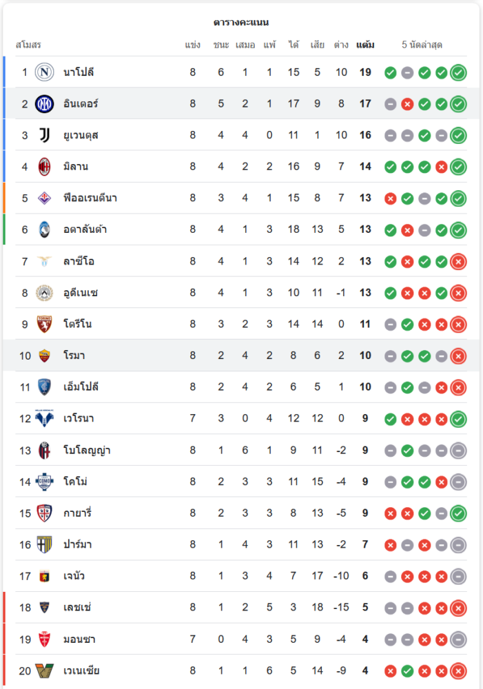 สถานการณ์ในตารางคะแนน