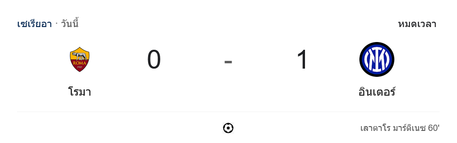 ผลบอลเซเรียอา 2024 ระหว่าง เอเอส โรม่า 0-1 อินเตอร์ มิลาน