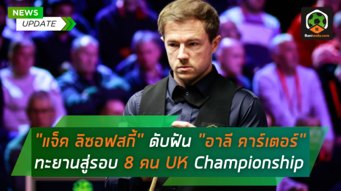 แจ็ค ลิซอฟสกี้ นักสอยคิวมือ 21 ของโลก โชว์ฟอร์มแกร่งแม้เจอการไล่ล่าจาก อาลี คาร์เตอร์ เอาชนะไปได้ 6-4 ทะยานเข้าสู่รอบ 8 คนสุดท้ายในศึก Victorian Plumbing UK Championship ที่เมืองยอร์ก งานนี้เจ้าตัวเตรียมล้างแค้นแชมป์เก่า มาร์ค อัลเลน ในรอบก่อนรองชนะเลิศ หลังเคยพ่ายแบบหวุดหวิดในรอบรองชนะเลิศเมื่อ 2 ปีก่อน