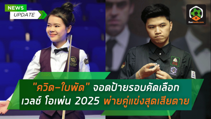 ศึกสนุกเกอร์รายการใหญ่ “เวลช์ โอเพ่น 2025“ รอบคัดเลือกที่จัดขึ้นระหว่างวันที่ 4-6 กุมภาพันธ์ 2568 ที่เมืองบาร์นสลีย์ ประเทศอังกฤษ ได้เริ่มต้นขึ้นอย่างเข้มข้น แต่กลับไม่เป็นวันของนักสอยคิวไทย เมื่อสองนักแม่นรูอย่าง “ควิด คิวเฮาส์” มนัสวินษ์ เพชรมาลัยกุล มือ 115 ของโลก และ “ใบพัด ศรีราชา” ศิริภาพร นวนทะคำจัน มือ 126 ของโลก ต้องพบกับความผิดหวัง หลังพ่ายคู่แข่งอย่างหมดลุ้นตั้งแต่รอบคัดเลือกรอบแรก (รอบ 128 คน) ตกรอบอย่างน่าเสียดาย