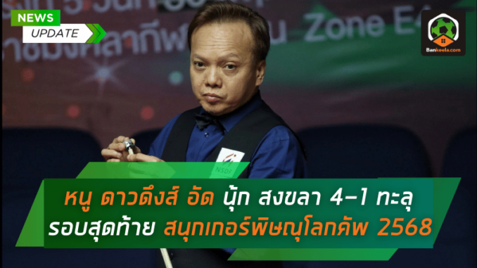 “หนู ดาวดึงส์” นพดล นภจร อดีตแชมป์สนุกเกอร์สมัครเล่นโลกและแชมป์เอเชีย โชว์ฟอร์มสุดเข้มข้น ใช้ประสบการณ์และความเก๋าเกมเอาชนะ “นุ้ก สงขลา” กฤษณัส เลิศสัตยาทร มือ 1 ประเทศไทย และตัวเต็งของทัวร์นาเมนต์ ด้วยสกอร์ขาดลอย 4-1 เฟรม ก้าวเข้าสู่รอบสุดท้ายในศึก พิษณุโลก คัพ 2568 ได้อย่างสง่างาม