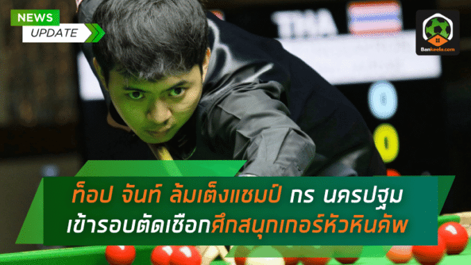 วงการสนุกเกอร์ไทยลุกเป็นไฟ เมื่อ “ท็อป จันท์” พงศกร จงใจรักษ์ โชว์ฟอร์มสุดแกร่ง พลิกโค่นแชมป์เก่าอย่าง “กร นครปฐม” ภาสกร สุวรรณวัฒน์ เต็งหนึ่งของรายการแบบสุดมันส์ 4-2 เฟรม ปิดฉากความหวังคว้าแชมป์สมัยที่ 3 ของกร พร้อมก้าวเข้าสู่รอบรองชนะเลิศไปเจอกับ “ไบร์ท ศรีราชา” ณัทณพงศ์ ชัยกุล ในศึก สนุกเกอร์หัวหินคัพ 2568 ที่โรงแรมหัวหินแกรนด์แอนด์พลาซ่า อำเภอหัวหิน จังหวัดประจวบคีรีขันธ์