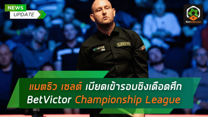 ในค่ำคืนที่แฟนสนุกเกอร์ลุ้นกันแทบหายใจไม่ทั่วท้อง แมตธิว เซลต์ โชว์ความเก๋าเกมเฉือนชนะในสถานการณ์กดดันสุดขีด คว้าตั๋วเข้ารอบชิงชนะเลิศของศึก BetVictor Championship League ที่เมืองเลสเตอร์ได้อย่างสุดมันส์ ท่ามกลางเสียงเชียร์กระหึ่มและสีหน้าผิดหวังของคู่แข่งที่ถูกเขี่ยตกรอบไปแบบฉิวเฉียด