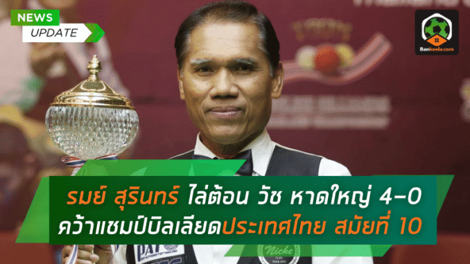 การที่ รมย์ สุรินทร์ อัด วัช หาดใหญ่ แบบขาดลอย 4-0 ในรอบชิงชนะเลิศบิลเลียดประเทศไทย 2568 คือการย้ำเตือนให้ทุกคนรู้ว่าแชมป์ 10 สมัยรายนี้ยังคงเป็นตัวจริงเสียงจริงในวงการ และยังไม่มีใครสามารถโค่นล้มความยิ่งใหญ่ได้ง่ายๆ แฟนกีฬาคิวทั่วไทยยังคงต้องติดตามต่อไปว่าเส้นทางตำนานของเขาจะไปได้ไกลแค่ไหน ติดตามข่าวสารวงการกีฬาและผลการแข่งขันเด็ดๆ แบบนี้ได้ที่ สนุกเกอร์สดบ้านกีฬา