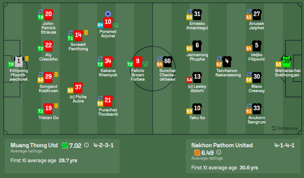 ปรเมศย์ อาจวิไล กองหน้าของ เมืองทอง ยูไนเต็ด เป็นผู้ทำประตูสำคัญในเกมนี้ และมีส่วนร่วมในการสร้างสรรค์โอกาสให้ทีม ทำให้เขาได้รับคะแนนสูงสุดที่ 8.4