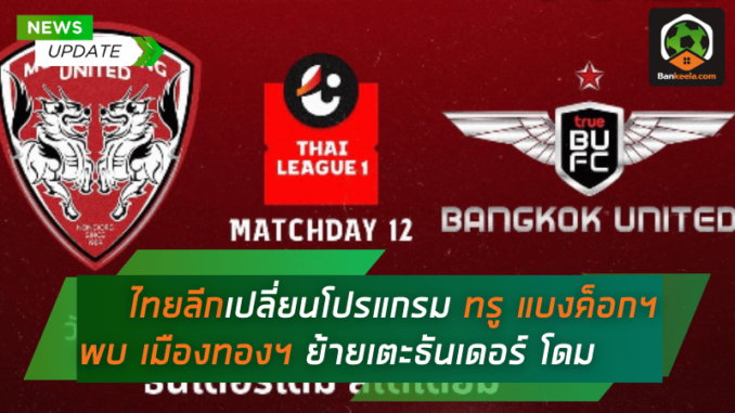 ไทยลีก ได้ออกประกาศแจ้งสลับโปรแกรมการแข่งขัน ฟุตบอลไทยลีก 1 ในแมตช์ที่แฟนบอลรอคอย ระหว่าง ทรู แบงค็อก ยูไนเต็ด พบกับ เมืองทอง ยูไนเต็ด โดยจะสลับเจ้าบ้านให้กับ เมืองทอง ยูไนเต็ด ในการแข่งขันเลกแรก ซึ่งจะจัดขึ้นในวันที่ 23 พฤศจิกายน 2567 เวลา 19.00 น. ณ สนามธันเดอร์ โดม สเตเดี้ยม