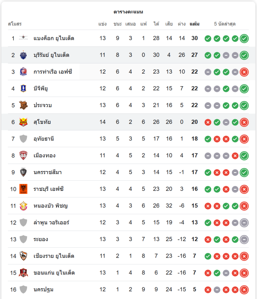 หลังจบเกมนี้ บุรีรัมย์ ยูไนเต็ด เก็บ 27 คะแนนจาก 11 นัด รั้งอันดับ 2 ของตาราง ขณะที่สุโขทัย เอฟซี ยังอยู่ในโซนกลางตารางที่อันดับ 6