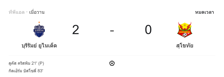 จาก : ผลบอลสด ไทยลีก 2024 ระหว่าง บุรีรัมย์ ยูไนเต็ด 2-0 สุโขทัย เอฟซี วันนี้ 22/11/67 – บ้านกีฬา