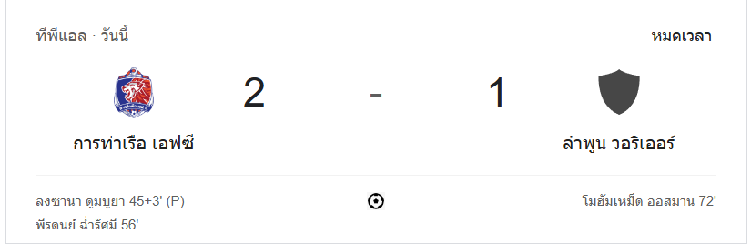 ผลบอลสด ไทยลีก 2024 ระหว่าง ทีม การท่าเรือ เอฟซี vs ลำพูน วอร์ริเออร์ วันนี้ 8/1/68 ดูบอลย้อนหลัง คลิปไฮไลท์ ดูบอลไทยลีก 2024