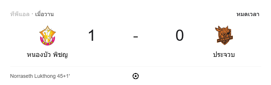 จาก : ผลบอลสด ไทยลีก 2024 ระหว่าง หนองบัวพิชญ เอฟซี 1-0 ประจวบคีรีขันธ์ เอฟซี วันนี้ 10/1/68 – บ้านกีฬา