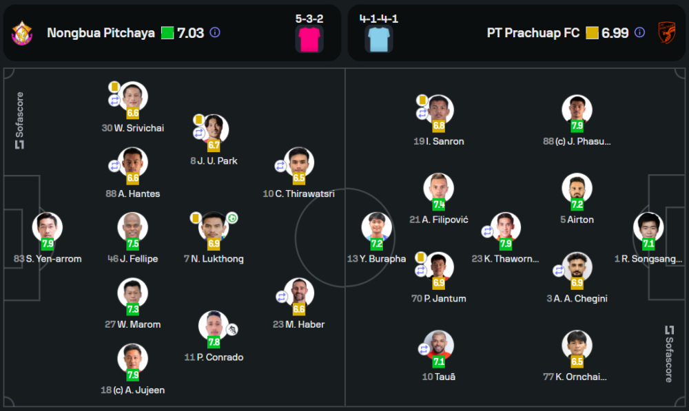 - 🟨 นาที 30: ใบเหลืองแก่ ชนาธิป ถิรวัฒน์ศรี