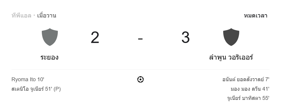 จาก : ผลบอลสด ไทยลีก 2024 ระหว่าง ระยอง เอฟซี 2-3 ลำพูน วอร์ริเออร์ วันนี้ 17/2/68 – บ้านกีฬา