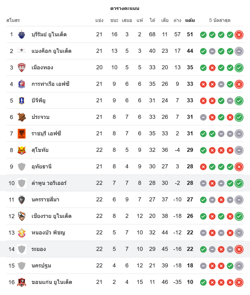 ชัยชนะของ ลำพูน วอร์ริเออร์ ส่งพวกเขาขยับขึ้นมาอยู่ที่ 10 มี 28 แต้ม ส่วน ระยอง เอฟซี ยังคงอยู่ที่ 14 มี 22 แต้ม สถานการณ์ของระยองเริ่มกดดันมากขึ้นเรื่อยๆ ในโซนท้ายตาราง
