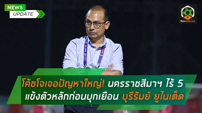สถานการณ์ของ นครราชสีมา มาสด้า เอฟซี กลับมาน่าหนักใจอีกครั้ง หลังจากเพิ่งปลดล็อกชัยชนะได้ในรอบ 7 นัด ล่าสุด แต่เกมสุดสัปดาห์นี้พวกเขาต้องเจอศึกหนัก เมื่อมีโปรแกรมบุกไปเยือน บุรีรัมย์ ยูไนเต็ด ทีมจ่าฝูงของศึก ไทยลีก 1 โดยที่ “โค้ชโจ” ธีระศักดิ์ โพธิ์อ้น ต้องเผชิญปัญหาใหญ่ เพราะจะไม่สามารถใช้งาน 5 นักเตะกำลังสำคัญของทีม ซึ่งอาจส่งผลกระทบโดยตรงต่อฟอร์มการเล่นของ “สวาดแคท” อย่างหลีกเลี่ยงไม่ได้
