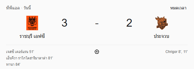 รายงานสด ผลบอลสด : ราชบุรี เอฟซี 3-2 พีที ประจวบ เอฟซี