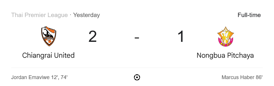 จาก : ผลบอลสด ไทยลีก 2025 ระหว่าง เชียงราย ยูไนเต็ด 2-1 หนองบัวพิชญ เอฟซี วันนี้ 4/4/68 – บ้านกีฬา