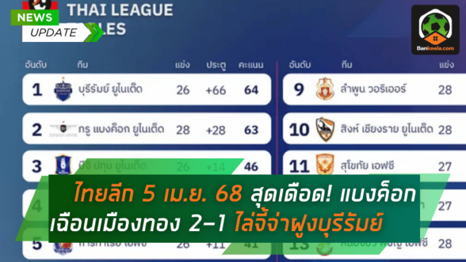 ตารางคะแนนไทยลีกล่าสุด (อัปเดต ณ วันที่ 5 เมษายน 2568)